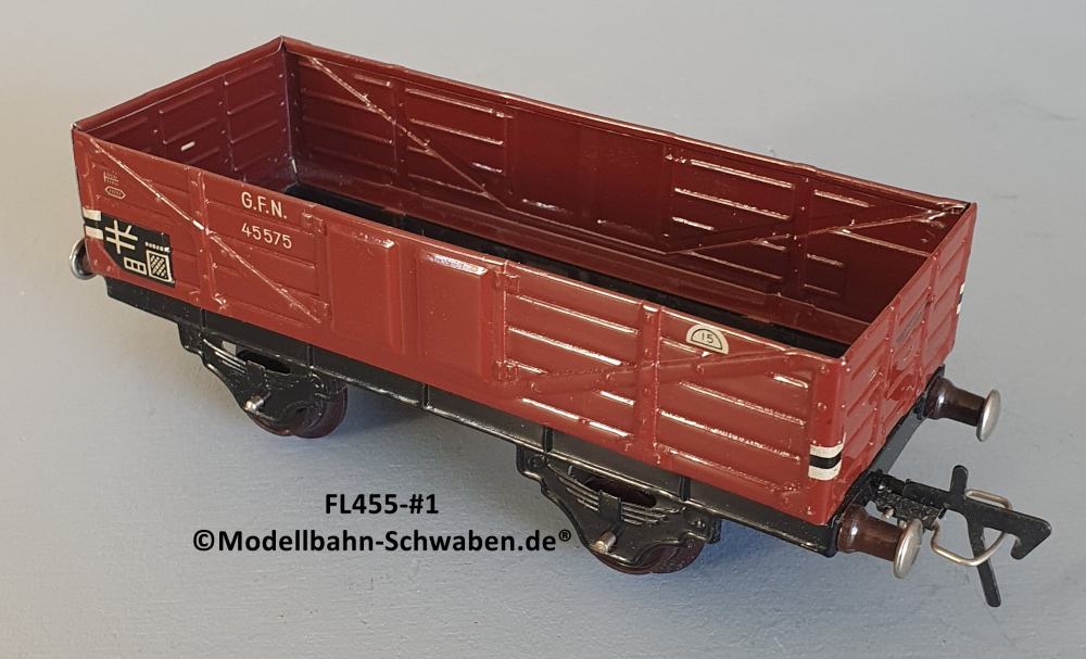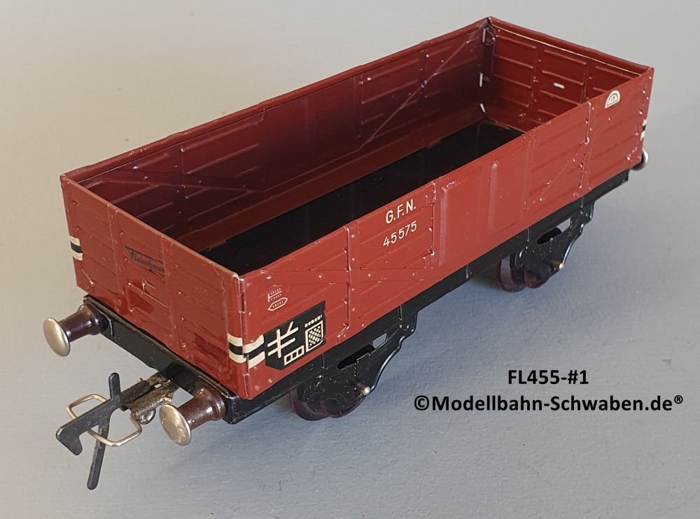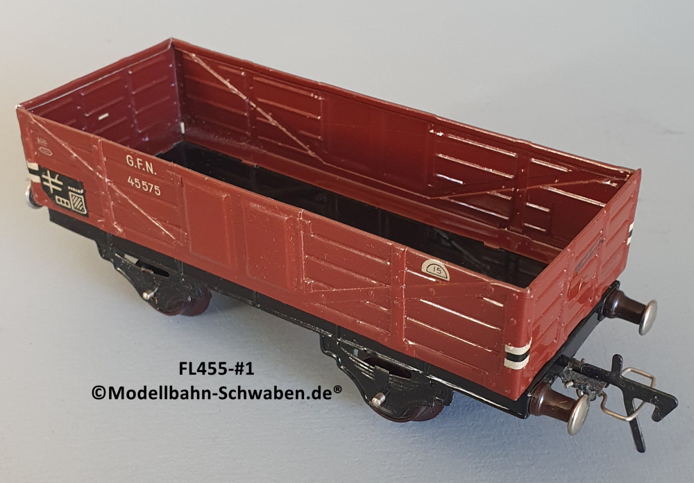 Fleischmann 455 Spur 0, Hochbordwagen, rotbraun, 2-achs, Metall,