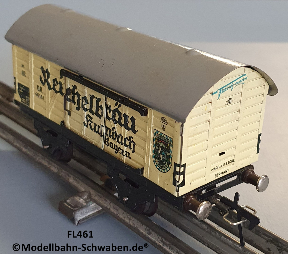 Fleischmann 461 Spur 0, Kühl- / Bierwagen Reichelbräu Kulmbach, Metall, weiss