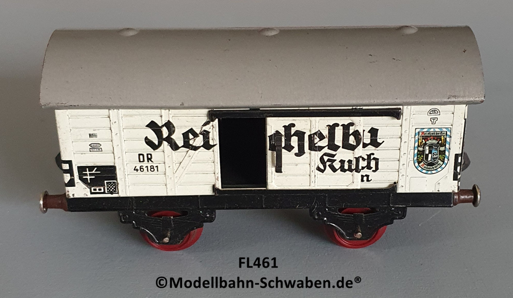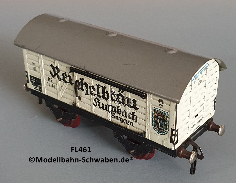 Fleischmann 461 Spur 0, Kühl- / Bierwagen Reichelbräu Kulmbach, Metall, weiss