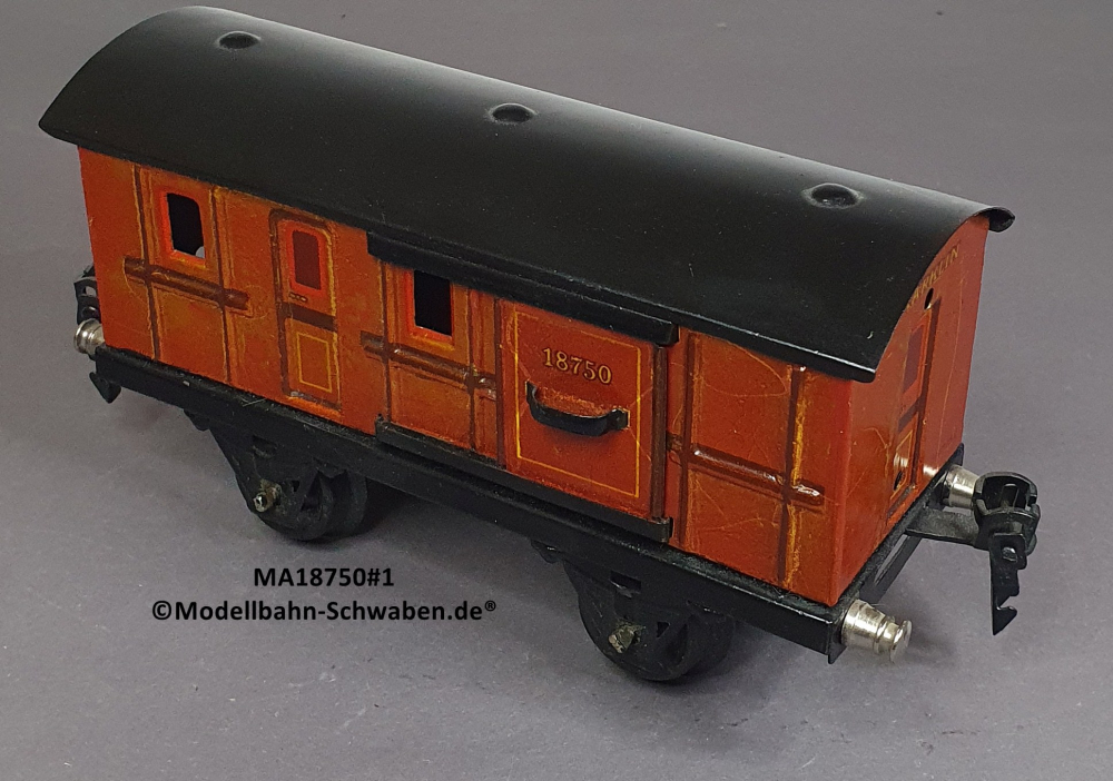 Märklin 18750 Spur 0, Blech Gepäckwagen, Schiebetüren, Rotbraun, 165 mm,