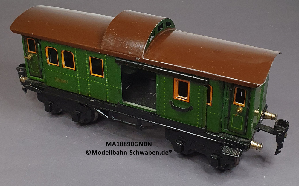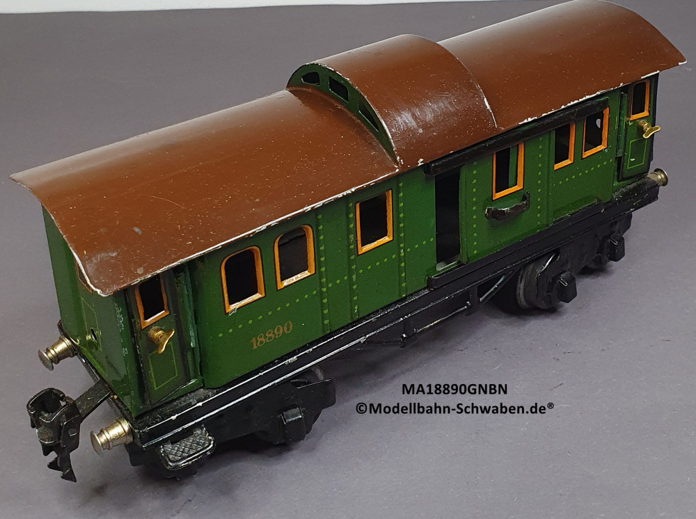 Märklin 18890 Spur 0, Blech Packwagen, 4-achsig, grün, Dach braun, 215 mm