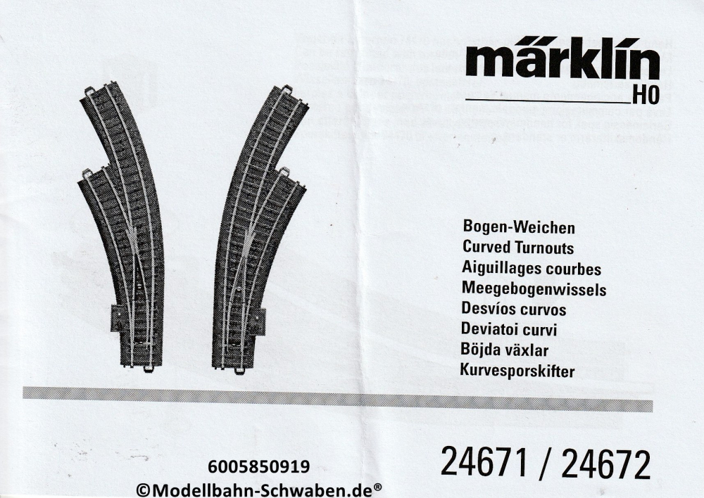Märklin 600585 H0 Gebrauchsanleitung für C-Gleis Bogenweichen 24671/72, Ausgabe 09/19