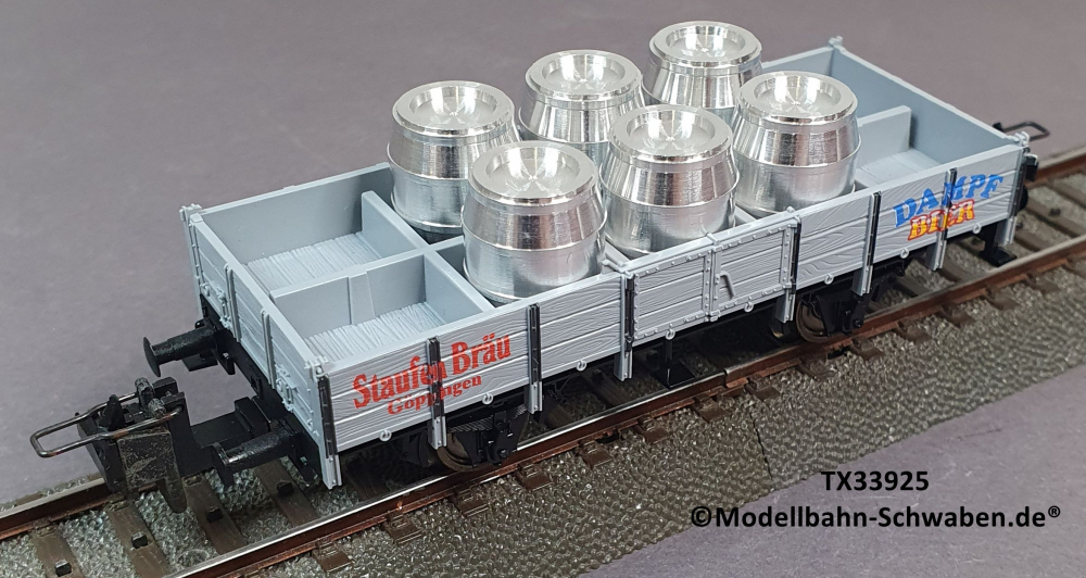 Trix Express 33925 H0 Güterwagen Staufen Bräu Dampfbier, 6 Fässer, OVP